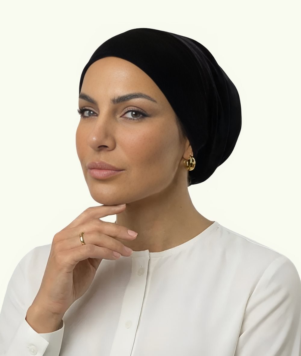 An adjustable one-piece velvet cap designed to fit all head sizes. Made from soft, luxurious velvet for an elegant look and feel.